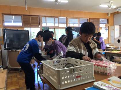 給食当番がエプロンに着替えるまでの間、当番ではない人が準備のフォローをしてくれていました。素早い準備、さすが高学年ですね。