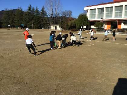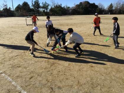 大学時代からラクロスを続けている教員の指導で4年生がラクロスを体験しました。