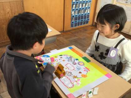 おはなしすごろくが完成し、みんなで楽しく遊びました。