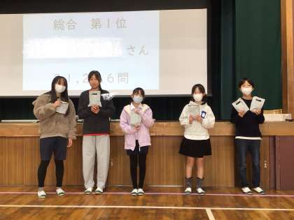 キュビ王表彰式を行いました。後期にドリルアプリのキュビナにたくさんチャレンジした人たちに、サンタクロースからプレゼントです。