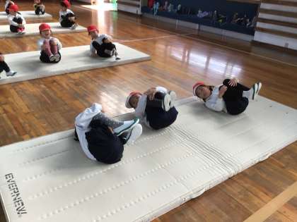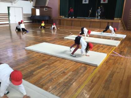 冬休み明けの体育は「マット遊び」を行っています。様々な動物歩きや転がり技に挑戦しています。