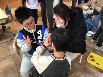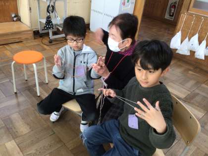1/20 1年 生活 昔の遊び あやとり 公開日 2026/01/20 更新日 2026/01/20 第1学年の様子 今日は、昔の遊び名人に来ていただき、遊び方を教えていただきました。あやとりの様子です。 1年