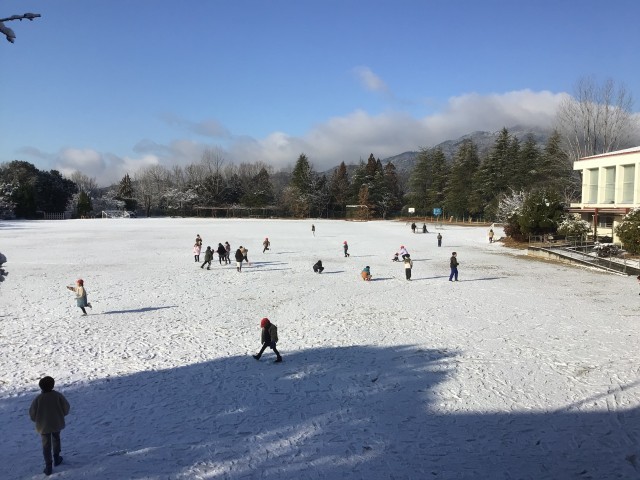 雪が積もったので、急遽、雪遊びをしました。寒くても元気いっぱいです。