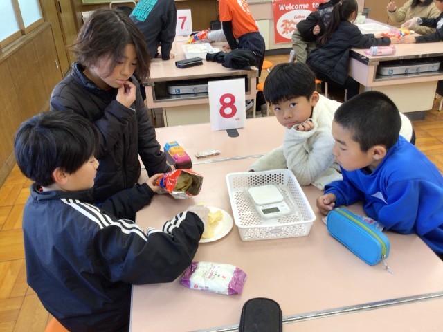 2/4 4年 カルビースナックスクール3 公開日 2026/02/04 更新日 2026/02/04 校長室から 班により、分量が全く異なります。「少なくない?」と思う班もあれば、ほぼ一袋全部を皿に盛っている班もありました。 校長