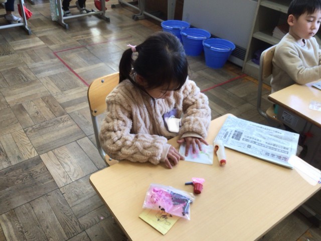 一日入学の準備や練習も大詰めです。今日は、夏に収穫したあさがおの種をプレゼントする準備をしました。絵を描いたりメッセージを書いたり、心を込めて作りました。