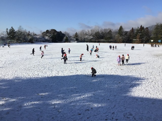 校庭に雪が積もったので、みんなで雪遊びをしました。