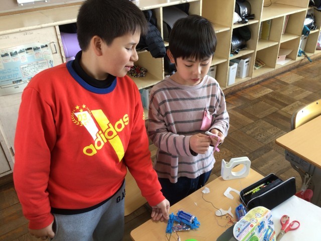 砂鉄を磁石にくっつけたり、魚釣りゲームを作ったりする姿がありました。