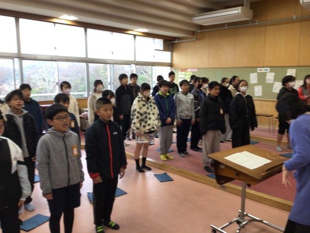 卒業演劇と卒業式に向けて合唱練習をしています。