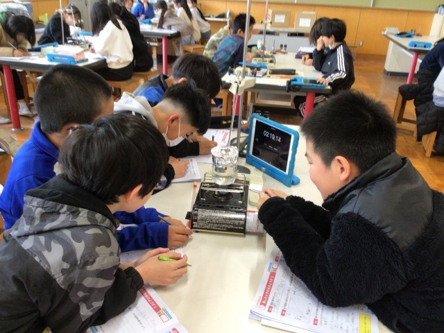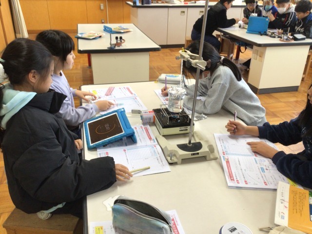 理科の実験で熱した水の温度の変化を観察しています