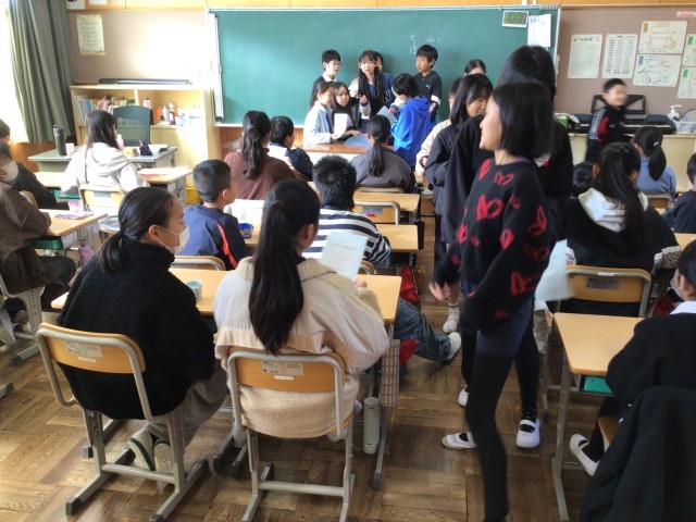 明日の送る会の招待状を6年生に渡しに行きました。