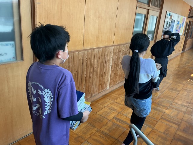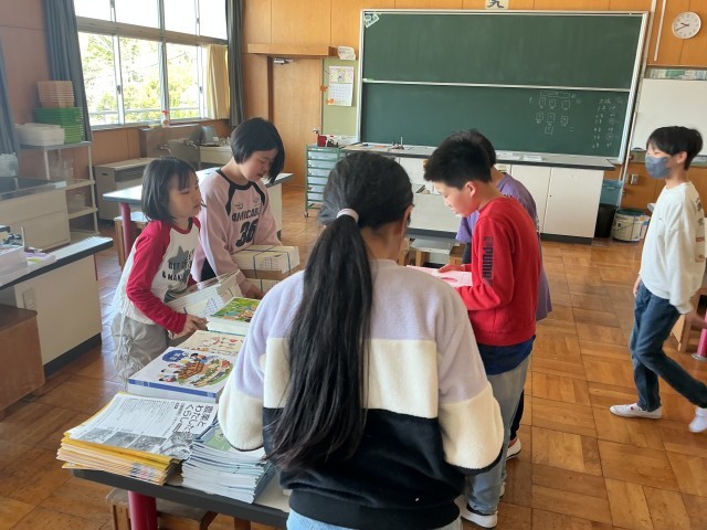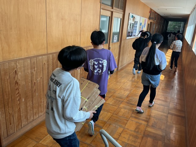 新6年生10人で全ての教科書を、なんと30分で運び終えました。素早く効率的な動きが素敵でした。