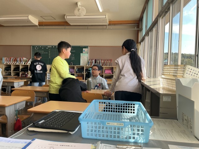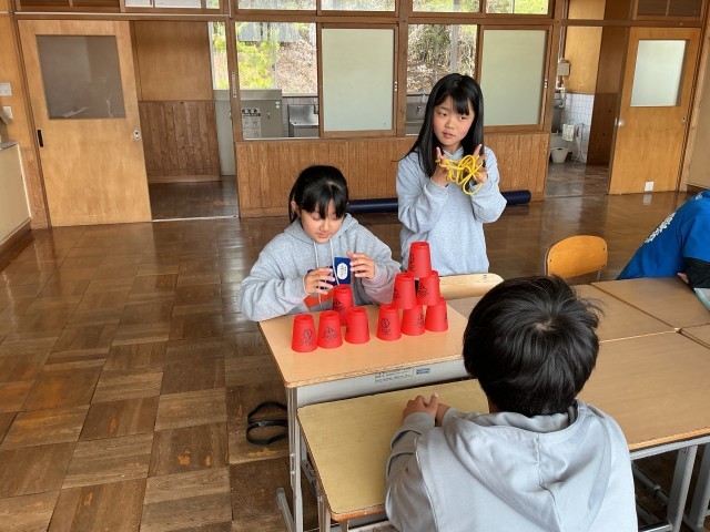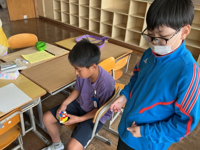 休み時間の様子です。九九バトル、コップチャレンジ、ルービックキューブをしていました。
