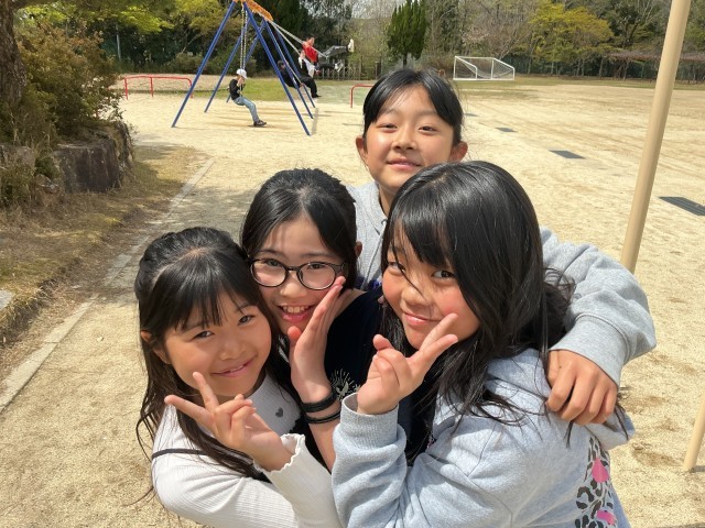 個人写真、学級写真を撮り終わったので、お外で元気に自由時間です。