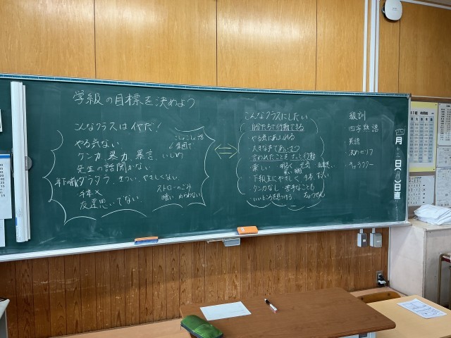 学級活動の時間では、どんなクラスにしたいかを話し合いました。