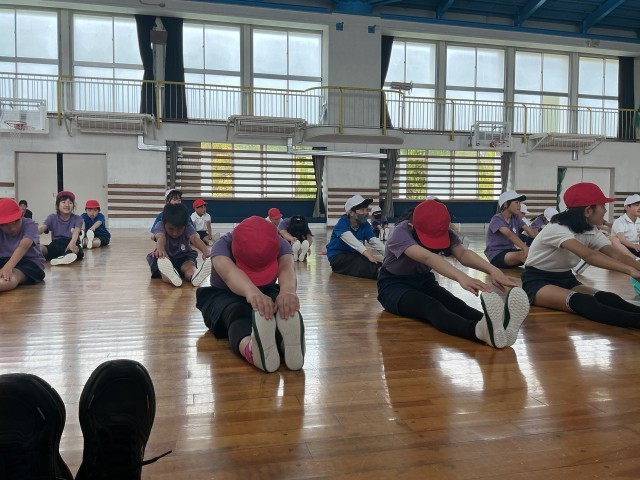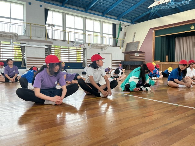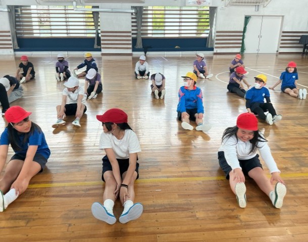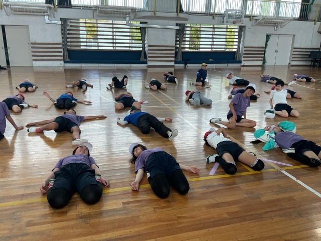 授業の最初に柔軟をしました。久しぶりの柔軟だったのか、たくさん悲鳴が聞こえました。