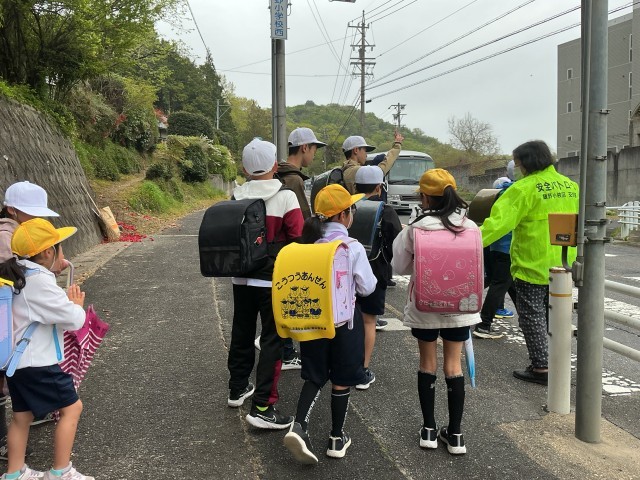 手をつないで、一年生に優しく声かけしながら歩く上級生の姿に感心しました。