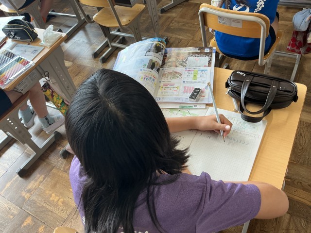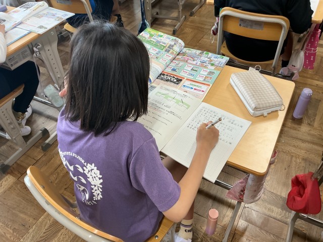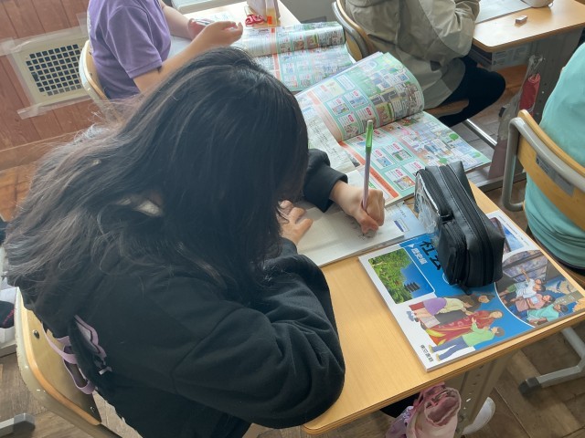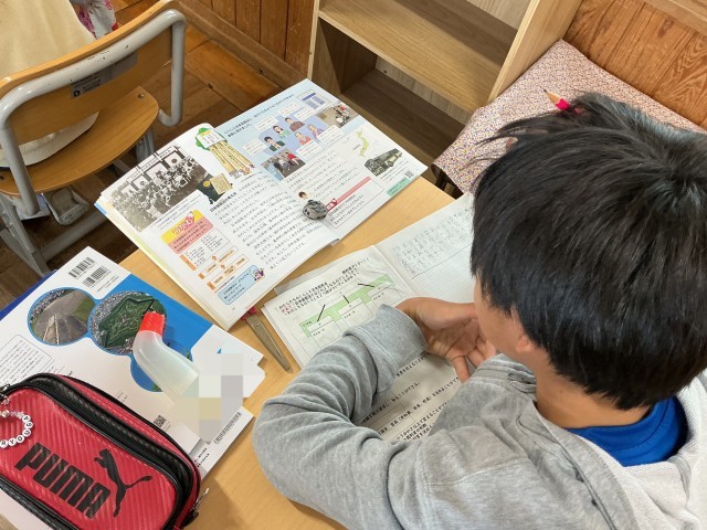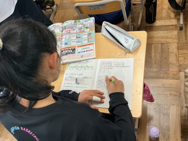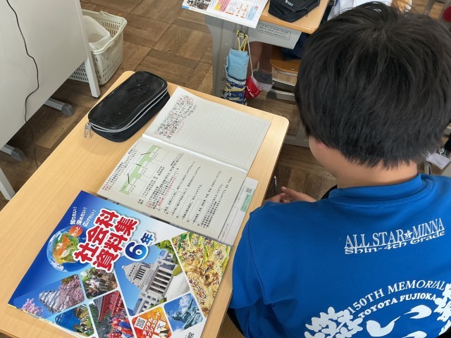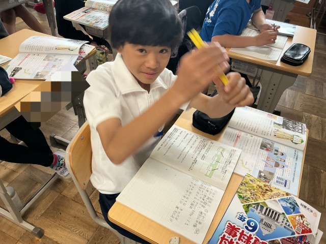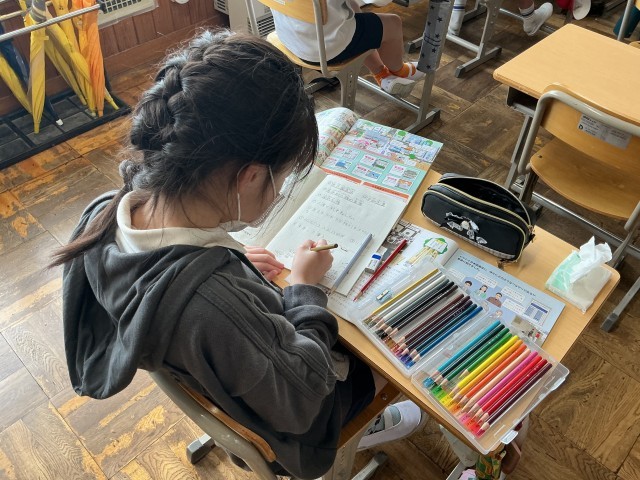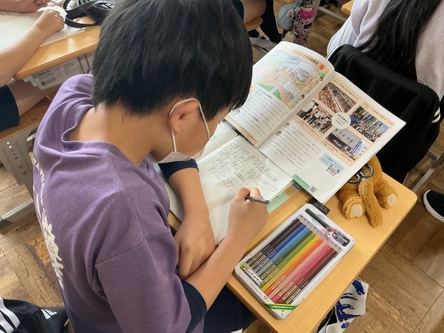 日本国憲法の学習です。三つの原則についてノートにまとめていました。