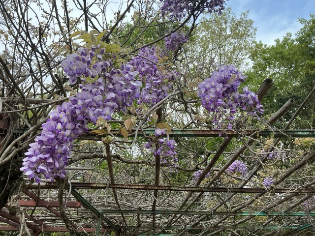 飯野小学校 藤棚 開花状況 公開日 2026/04/17 更新日 2026/04/17 校長室から 学校の藤棚に、薄紫の藤の花が咲き始めました。藤の花言葉は「優しさ」「歓迎」などがあるようです。しなやかに たおやかに咲く藤の季節が、やってきましたね。ほのかに甘い香りがします。 校長