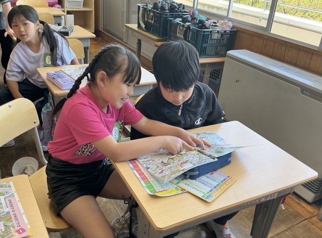 3年生 社会 授業開き 公開日 2026/04/18 更新日 2026/04/18 第3学年の様子 3年生から新しくスタートする教科の1つ、社会科の授業開きです。3年生の社会科ではどんなことを学習するのかを話した後、早速学習に入りました。まちの様子を表したイラストを見て、気づいたことをペアで探し、発表しました。