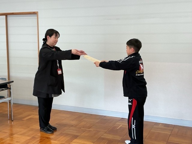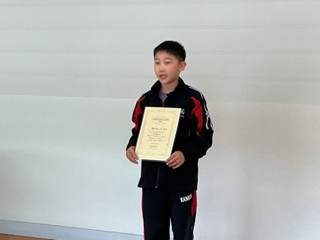 担当教諭から、学習用タブレットの使い方について話しがあり、代表児童が校長から認定証を受け取りました。
