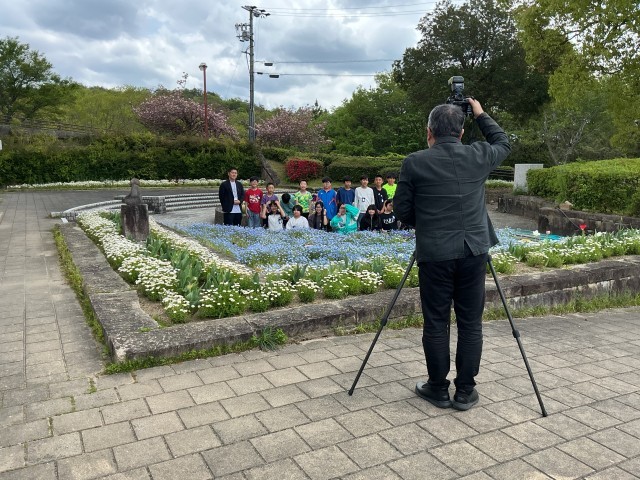 花壇の前で卒業アルバム用の集合写真を撮影しました。