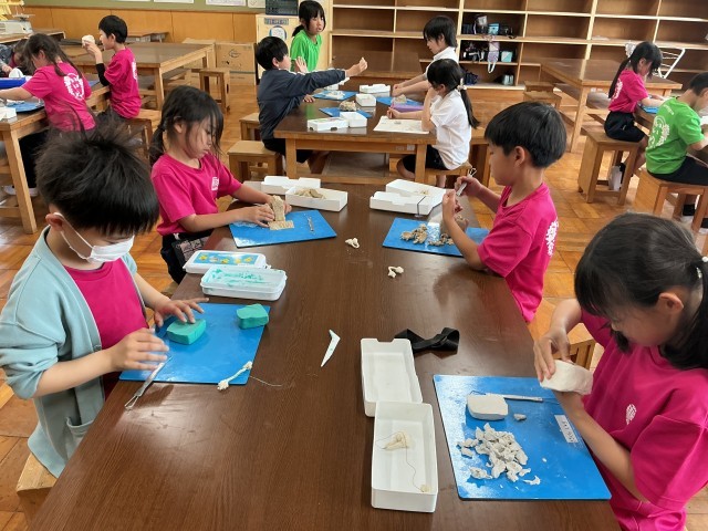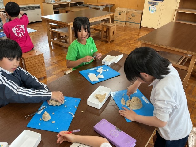 3年生 図工 切ってかき出しくっつけて 公開日 2026/04/22 更新日 2026/04/22 第3学年の様子 切り糸とかきべらの使い方をいろいろ試して、できた形を生かしながら作品を作りました。みんなで鑑賞し合いました。