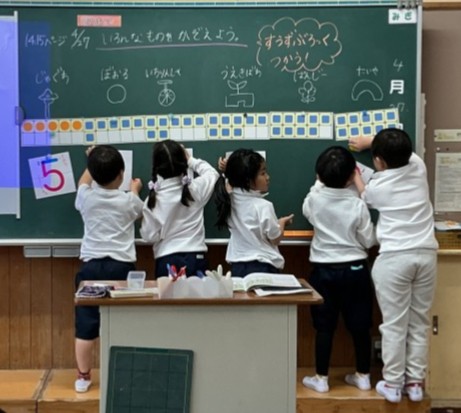 10までの数をみんなで確認しました。数図ブロックを扱うのが上手になりました。