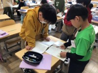 焼き芋パーティーに向けて3・4時間目に準備をしました。先生やボランティアの方の話...