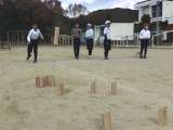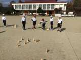 体育の学習で「モルック」を行いました。最後はちょうど50点になるようにどのピンを...