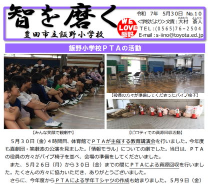 「学校だより 智を磨く No.10」を発行しました。 【今号の内容】 ・飯野小学...