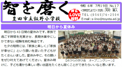 「学校だより 智を磨く No.17」を発行しました。 【今号の内容】 ・明日から...