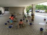 8の字風車を紙皿を使って作りました。 風車の羽を作るのが難しく、苦戦していました...
