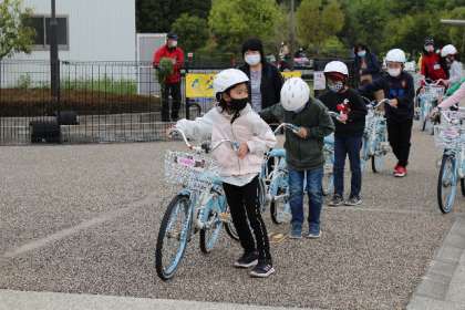 屋外では、実際に自転車を使い交通ルールを守って乗車する体験をしました。とても充実した時間を過ごせました。