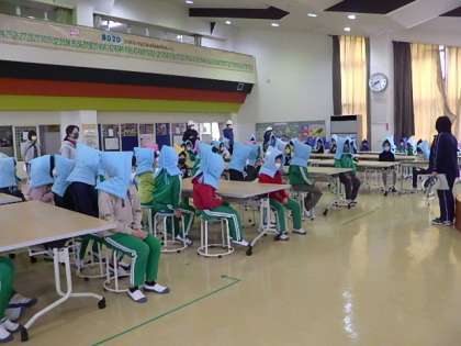4月16日(金)、雨で延期されていた避難訓練を実施しました。事前に各学年で避難時の注意点、避難経路などの指導を受けての実施です。「お・は・し・も」を守って迅速な避難ができました。途中から雨が降り出し、ホールでの事後指導となりましたが、話を聞く表情は真剣そのものでした。