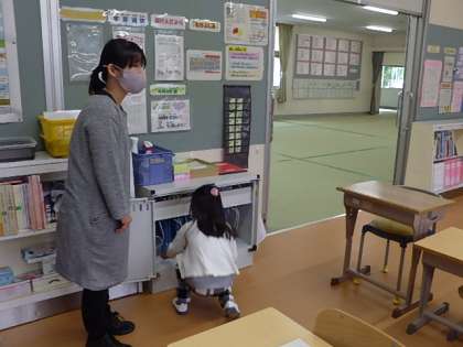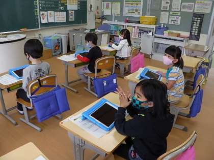 担任から、使い方の説明(決められた場所から持っていき決められた場所に返す、ケーブルを引っ張らない等)を受け、一人一台ずつ机上で操作していました。