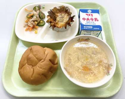 【りんごパン、牛乳、夏野菜グラタン、元気サラダ、たまごスープ】でした。