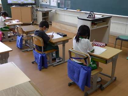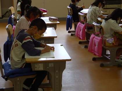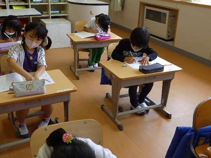 全員が一言もおしゃべりせず、よそ見もせずテキストに向かっていました。姿勢のよい子もたくさんいました。