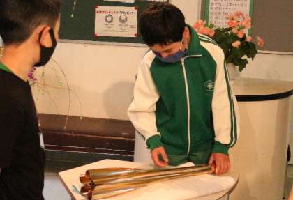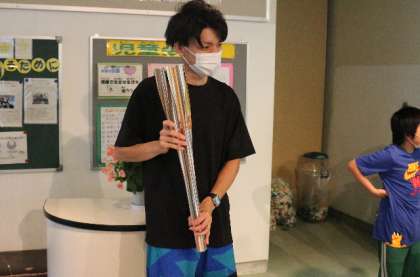 稲武在住の方から「私の甥が東京オリンピックの聖火ランナーをつとめ、その時のトーチがあるから、子どもに見せてあげてはどう?」という連絡を頂き、トーチをお借りすることができました。