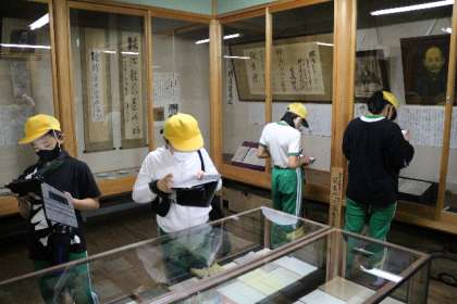 6年生が総合的な学習の一環として、郷土の歴史や偉人を学ぶために古橋懐古館へ行きました。この地が稲橋村と呼ばれていたころから、古橋家歴代当主が収集した文書や民具、そして古橋家の方の業績などを調べたりしました。