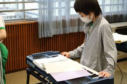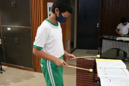 高学年の音楽は合奏です。各自1台ずつ楽器を使って、「ラバース コンチェルト」に挑戦しています。