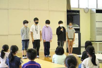 前期も終わりを迎えます。前期を振り返り、各学年の代表者が発表をしました。自分の頑張ってきたこと、後期に取り組みたいことなどを分かりやすく堂々と話していました。