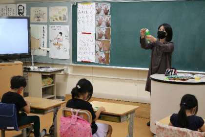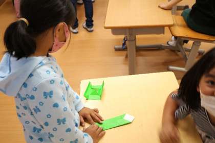 1年生の図工で折り紙を使っての箱作りに挑戦しています。