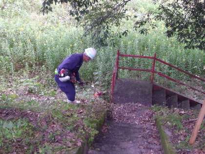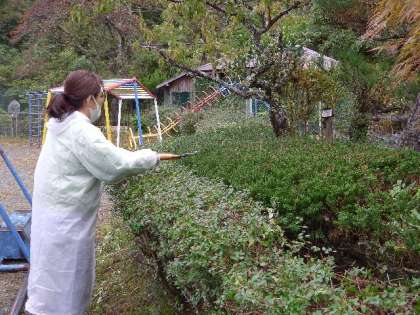 小雨が降る中でしたが、ボランティアの方々が見え、環境整備をしてくださいました。本年度は、感染症対策などで予定していた環境整備作業ができず、特に川側の草が大きく茂っていました。その草をきれいに刈ってくださいました。また、伸びてきた庭木の剪定も行ってくださいました。