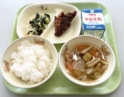 【ごはん、牛乳、さばの竜田揚げ、野菜のごまあえ、さつまいものみそ汁】でした。