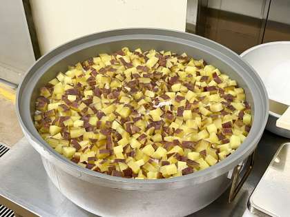 今日のさつまいもは、稲武地区で収穫されたものを使用させていただきました。品種は「鳴門金時」という、甘くてホクホクとした食感が特徴のさつまいもです。今日もみなさんしっかりと食べていてよかったです。