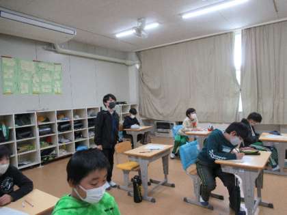 5年生は総合的な学習で、森林について学習しています。新しいことを知っていく中で林業について関心をもつ子が増えてきました。そこで、森林組合の方からお話を聞くことになりました。現場で作業をする人が減っていることを聞いたり、間伐するときに使う大きな機械の写真を見たりして、人工林を管理することの大変さを改めて知ることができました。