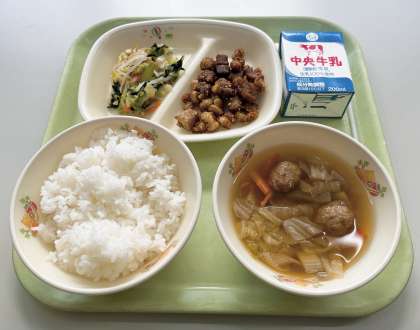 【ごはん、牛乳、まぐろと大豆のみそがらめ、くるみあえ、ちゃんこ汁】でした。