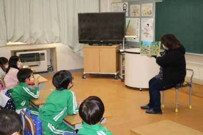 11月19日、「たけのこ」の方々による読み聞かせがありました。子どもたちの様子を見て語りかけるような読み聞かせに、子どもたちは引き込まれ、じっと絵を眺めながらきいていました。