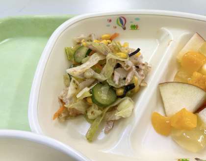 りっちゃんの元気サラダとは、1年生国語「サラダでげんき」の物語に登場するサラダのことです。主人公のりっちゃんが、病気のお母さんに元気になってもらうために、沢山の食材を使ってサラダを作ります。給食でも物語と同じ食材を使って再現しました。「今日サラダでげんきを音読したよ!」と声をかけてくれる1年生もいました。