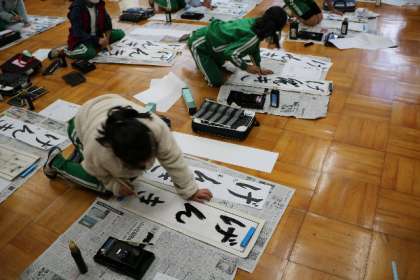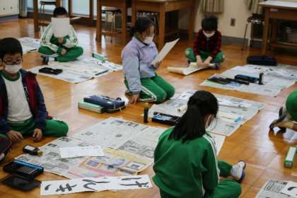 12月に入り、書き初めの練習が始まりました。3年生は「げんき」です。書くときのポイントを確認して練習が始まりました。困ったときには周りの子と確認したり、先生に質問したりする様子が見られました。